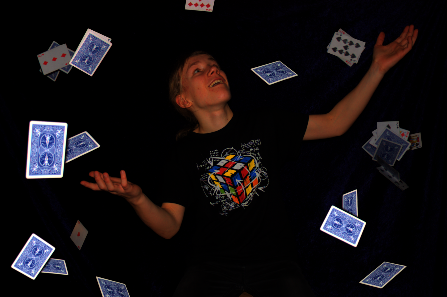 Ich trainiere zweimal pro Woche gezielt Präsentation und Fingerfertigkeit, um mich stetig weiterzuentwickeln. Gleichzeitig gebe ich meine Begeisterung auch an Kinder weiter, die selbst die Welt der Zauberei entdecken möchten.